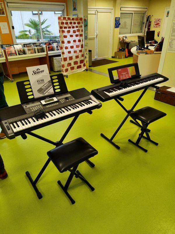 Claire, responsable de la médiathèque, était présente lors de la remise et réfléchit déjà à la manière d’intégrer ces nouveaux instruments aux futures animations et activités musicales !