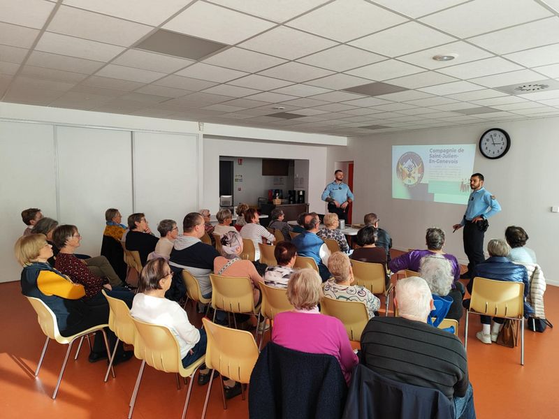 Mardi après-midi, le Club des Seniors de Seyssel a accueilli la Brigade Territoriale Mobile du Pays Genevois. Les gendarmes ont animé une séance d’échanges consacrée à la prévention des vols, arnaques et cambriolages. À travers des exemples concrets et des conseils pratiques, ils ont sensibilisé les participants aux bons réflexes à adopter pour se prémunir contre ces risques du quotidien.