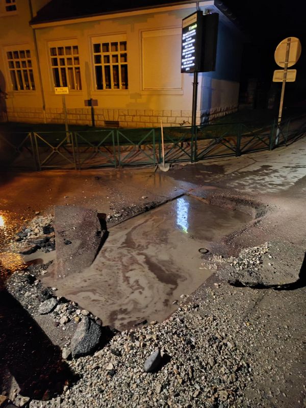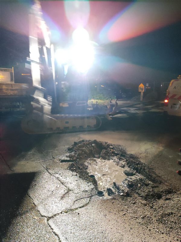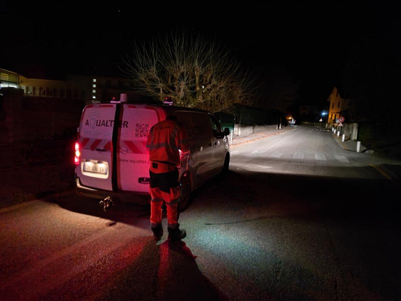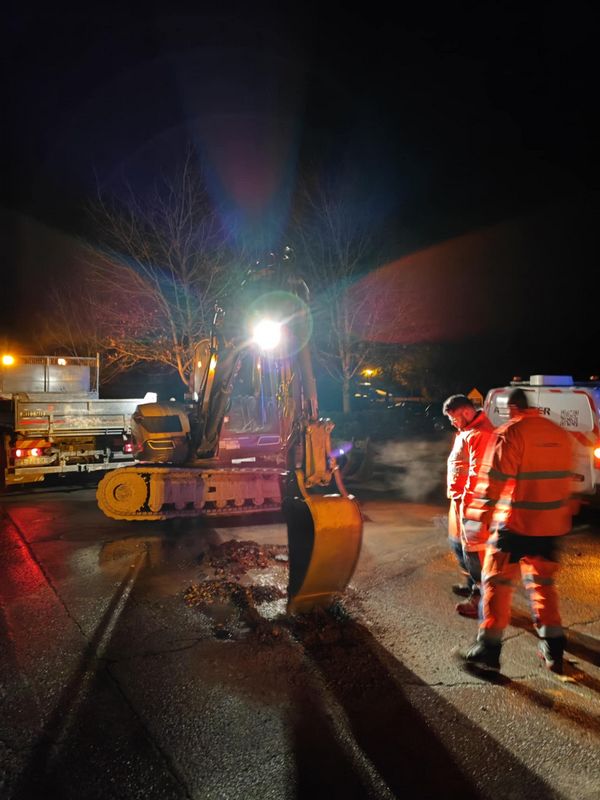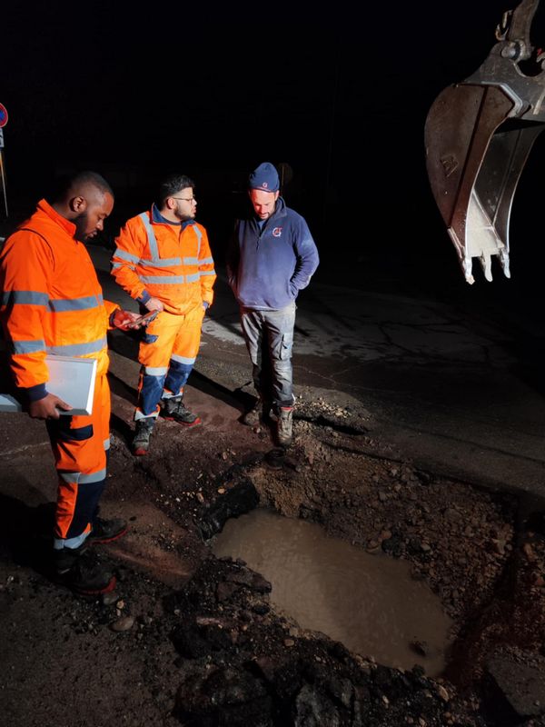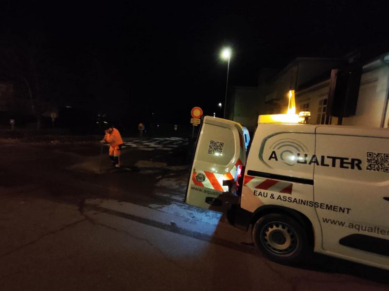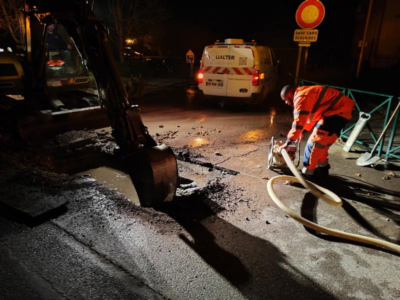 Intervention nocturne pour la réparation d’une fuite d’eau au carrefour de l’école