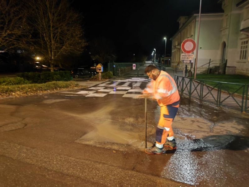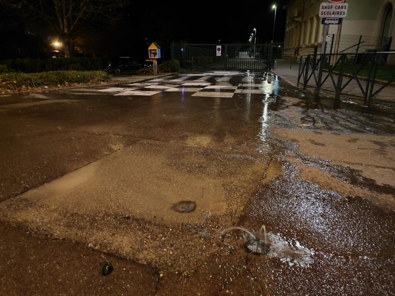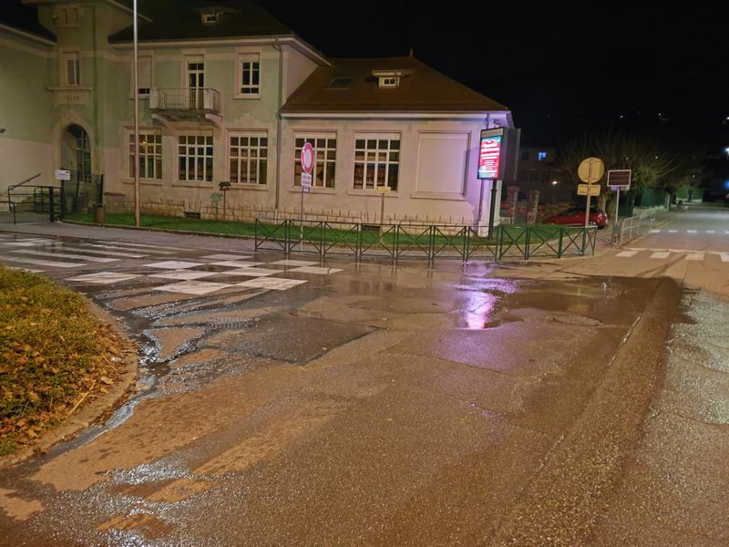 Dans la soirée du 13 novembre, une importante fuite d’eau a été détectée au niveau du carrefour de l’école Jules-Coissard. Le signalement a été transmis immédiatement à Aqualter, délégataire du service d’eau potable.