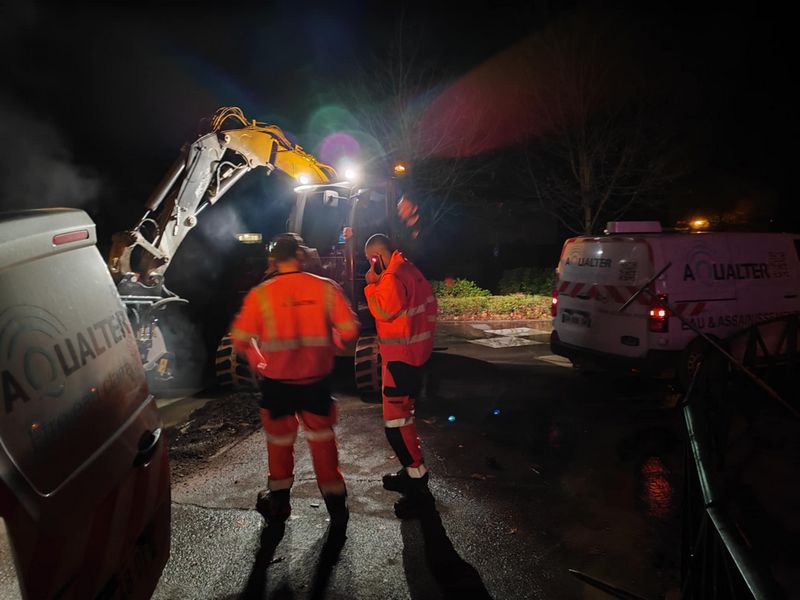 Les équipes d’Aqualter, appuyées par leur prestataire local Forestier TP, sont intervenues sans délai. Le travail coordonné entre les techniciens présents sur site et ceux mobilisés à distance a permis d’identifier l’origine de la fuite, d’ajuster le maillage du réseau, puis de procéder aux opérations d’excavation et de réparation.