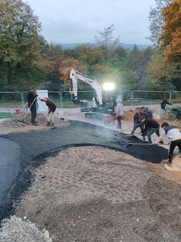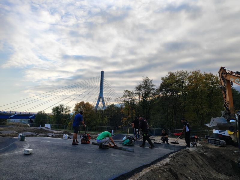 La partie technique des enrobés s’étant parfaitement déroulée en octobre. L’équipe de BMX Expérience et Mickaël Le Cann (récent Champion de France de Pumptrack 2025 “masters hommes”) ont ainsi pu effectuer les premiers tests sur les circuits.