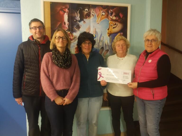 Un moment symbolique a été partagé lors de la remise d’un chèque préparé pour l’occasion, en présence des bénévoles de l’association, d’un représentant de la municipalité de Seyssel Haute-Savoie (gestionnaire du cinéma), et de la représentante challongeoise du Comité Féminin pour le Dépistage. Une belle initiative qui témoigne de l’engagement local en faveur de la santé et de la solidarité.