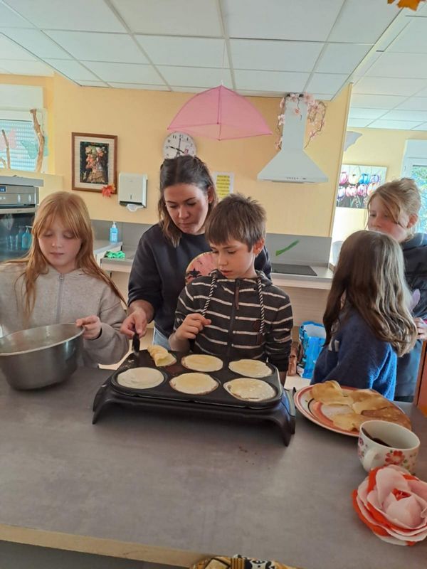 Début novembre, 8 enfants du centre de loisirs de Chautagne sont venus faire un goûter crêpes, retrouvailles émouvantes avec le groupe qui avait participé aux ateliers mosaïques.