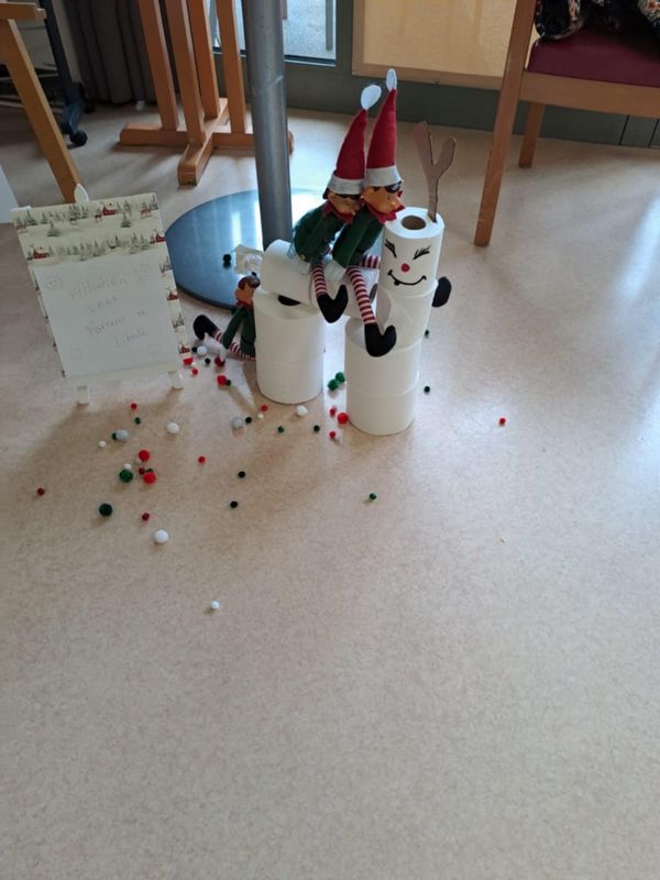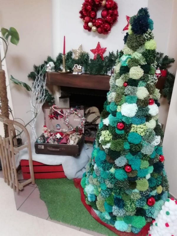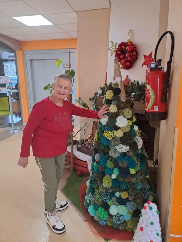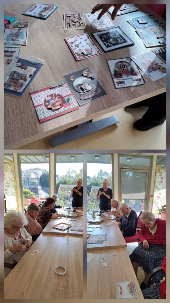 Fin novembre, atelier carterie en vue du marché de Noël. Les ateliers loisirs créatifs ont été dédiés aux pompons verts, 640 ont été faits par les résidents et personnel pour le challenge Sapin.