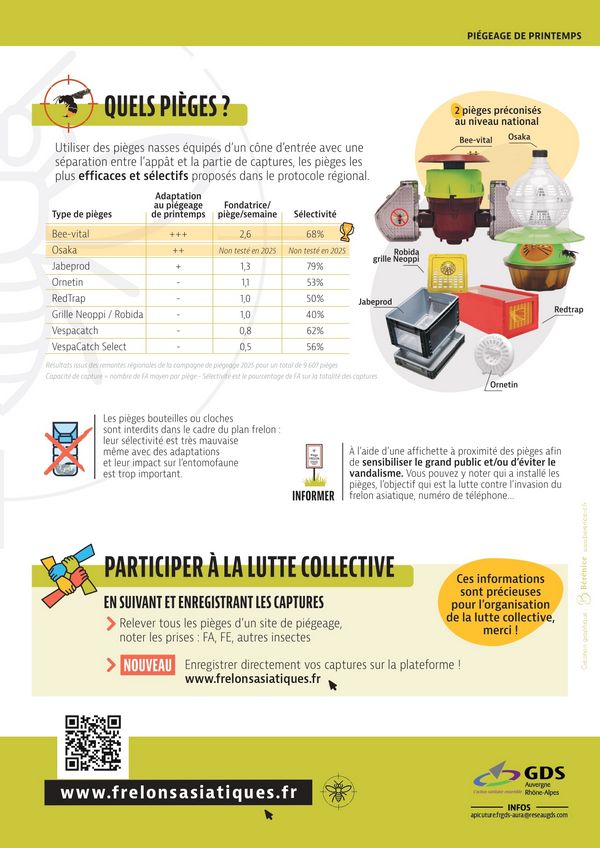 Le GDS des Savoie, responsable et pilote de la lutte contre le frelon asiatique sur les deux Savoie, organise ses actions 2026, à savoir le piégeage de printemps et la destruction des nids.